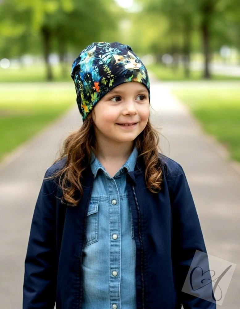 Dětská dvojitá homeless čepice kočky na tmavé vel.50