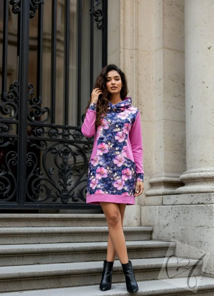 Dámské mikinošaty LILY s kapucí ve vel.38 květy