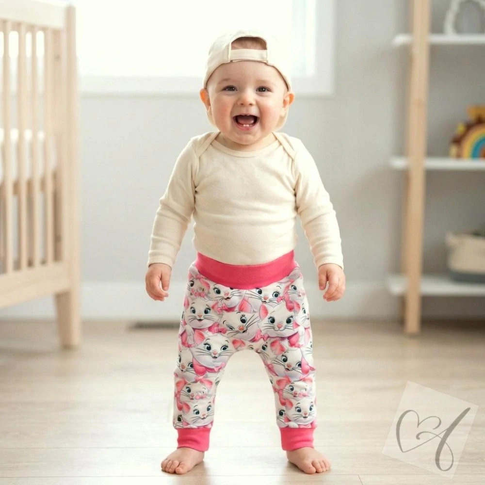 Rostoucí dětské kalhoty baggy kočičky růžové